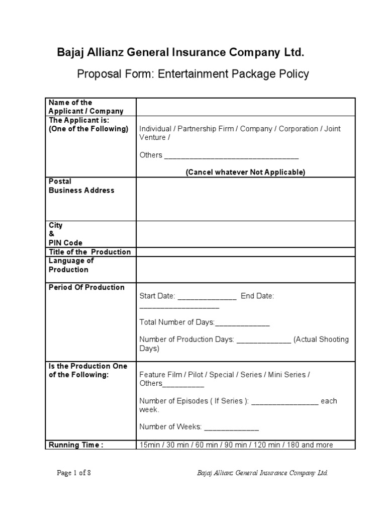 Film Insurance Proposal Insurance Business Free 30 Day Trial