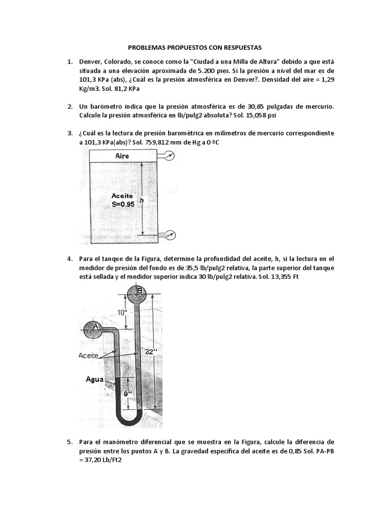7 Problemas Propuestos Con Respuesta Medida De Presion