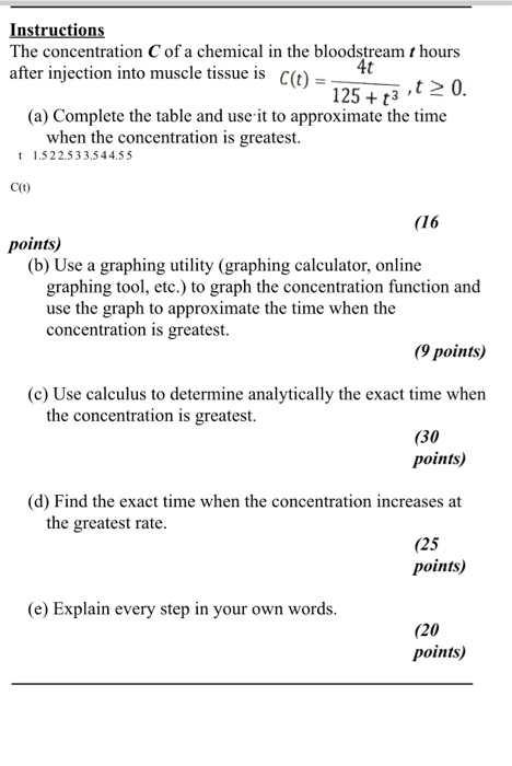 Solved The Concentration C Of A Chemical In The Bloodstre