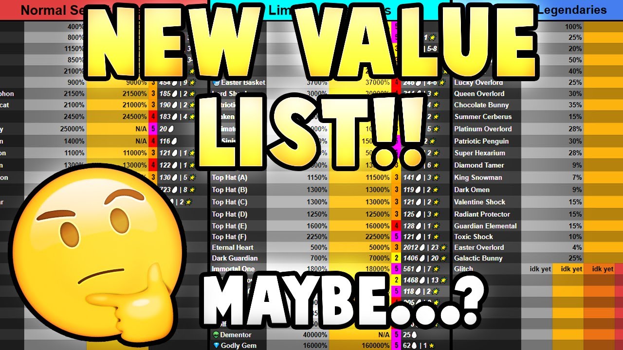Outdated Official Value Guide List For Bubblegum Simulator