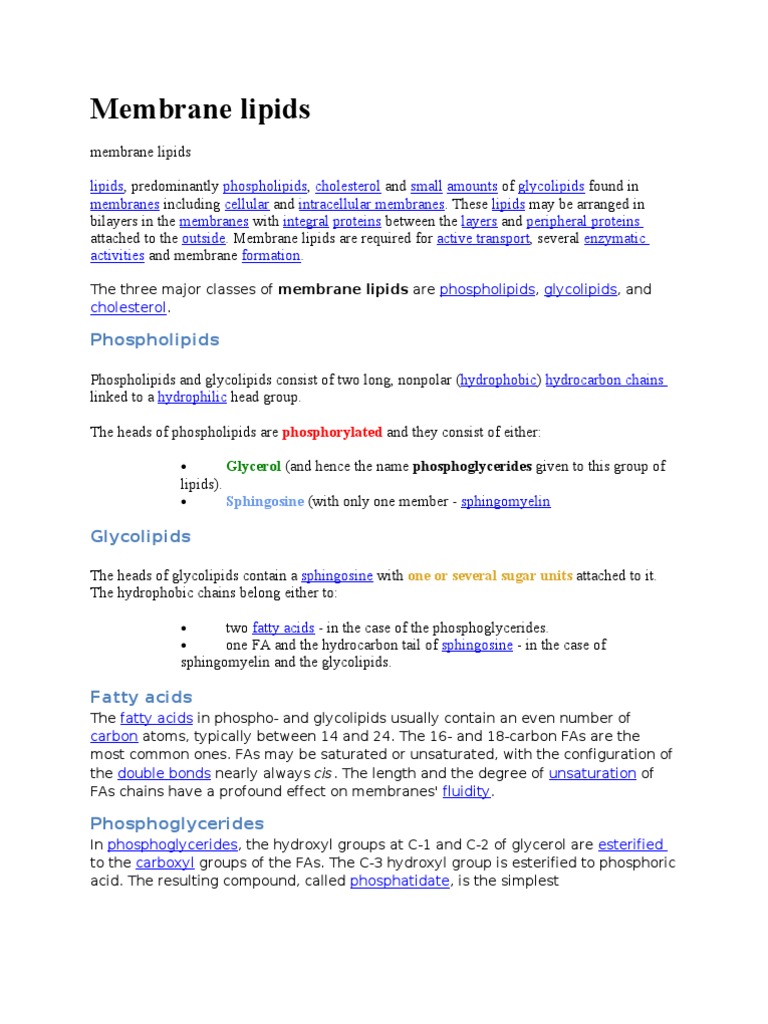 Membranes And Membrane Lipids