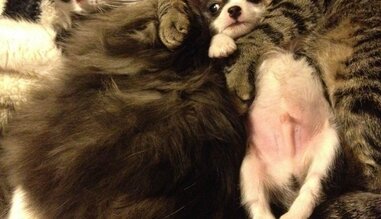 Dogs And Cats Cuddling Snuggle