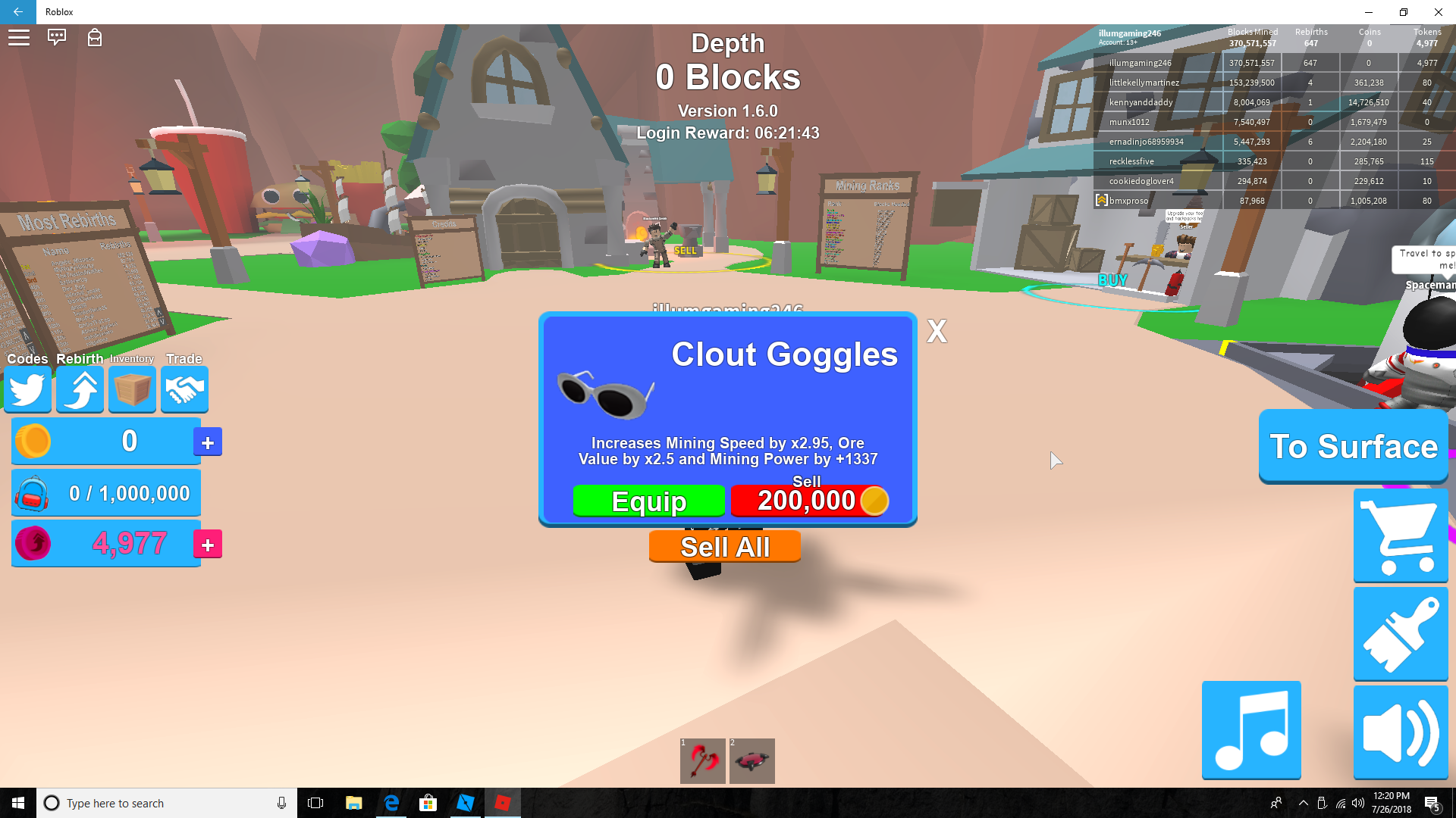 Roblox Mining Simulator Gamelog July 7 2018 Free Blog Directory