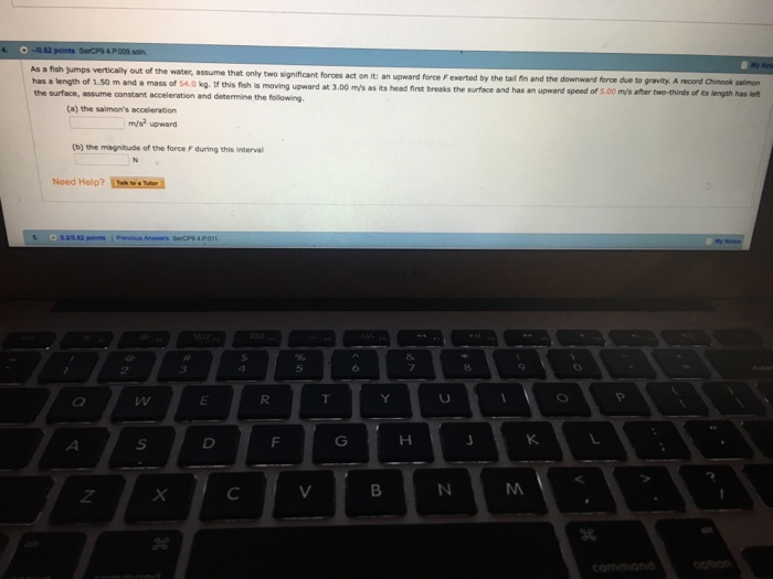 Solved As A Fish Jumps Vertically Out Of The Water Assum